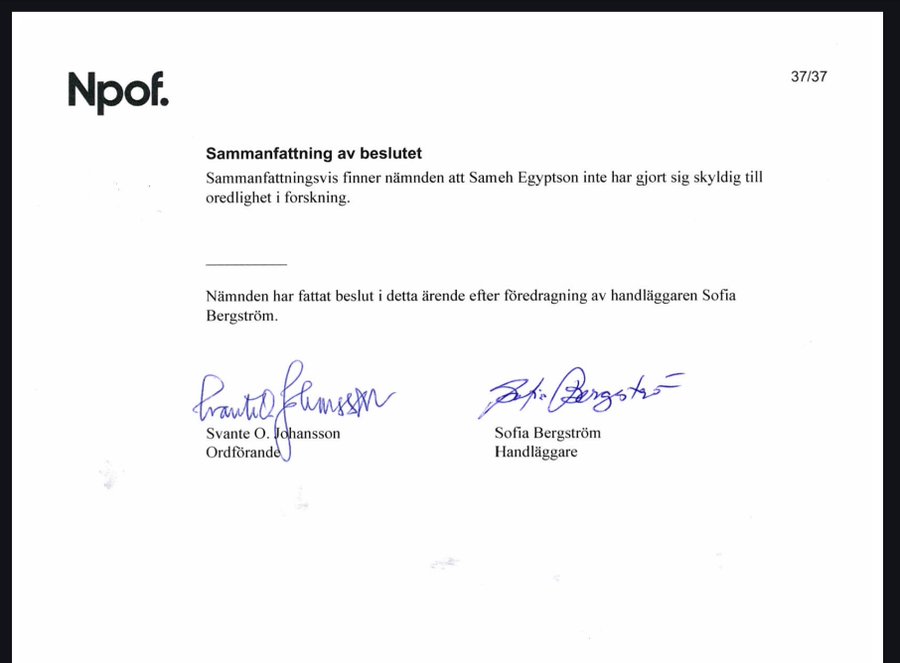 Nu har Nämnden för prövning av oredlighet i forskning (NPOF) sagt sitt, två och ett halvt år efter disputationen då Anna Ardin, Mattias Irving och Yasir Al-Sayed Issa gjorde allt som stod i deras makt att krossa Sameh Egyptson: